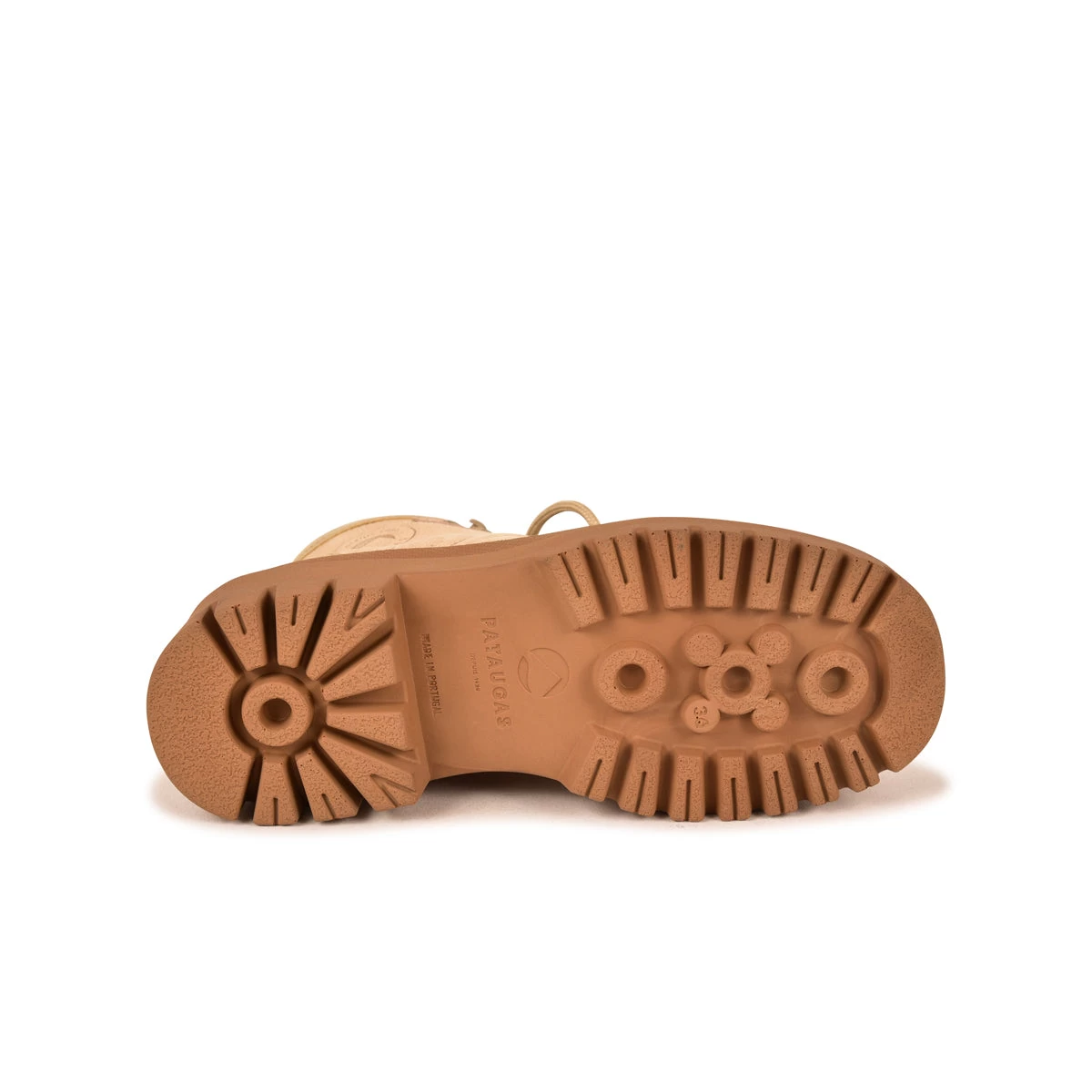 La bottine pour femme AINOA est une chaussure idéale pour allier modernité et confort grâce à semelle compensée et crantée. C’est une boots munie d’un cuir beige robuste réhaussé par des surpiqûres et qui reprend les codes des chaussures de montagne.