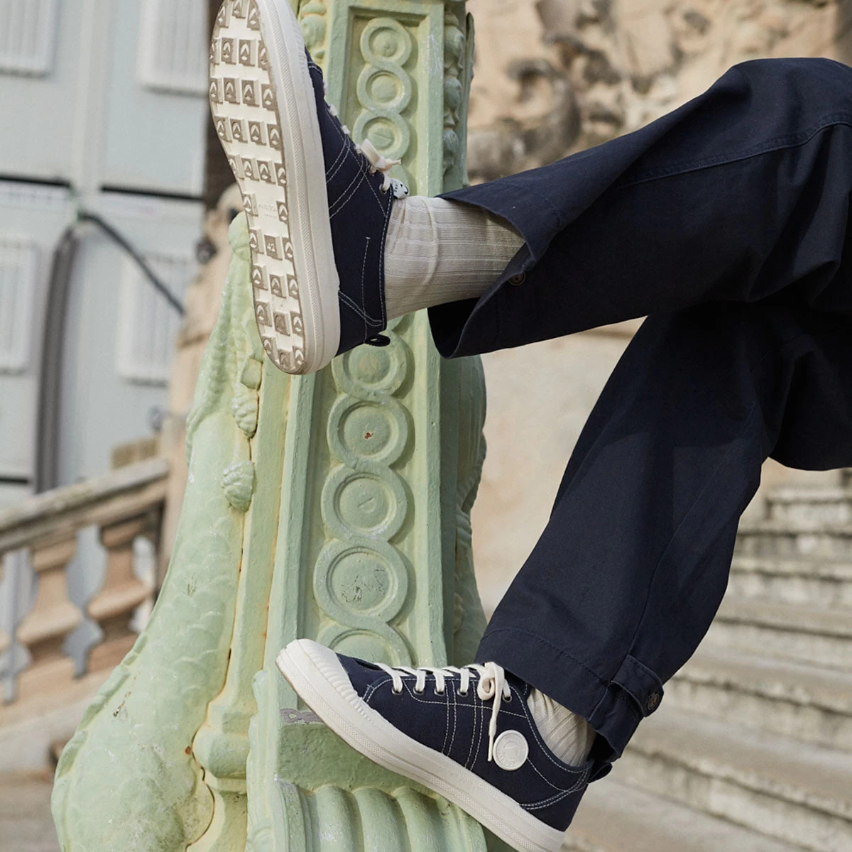Alliez confort et style avec la basket pour homme en toile Etche. Cette basket est munie d’une tige bleu marine robuste et 100% recyclée. C’est une chaussure pour homme légère et très souple grâce à sa semelle en caoutchouc naturel. Sa semelle intérieure est anatomique pour votre confort et amovible.