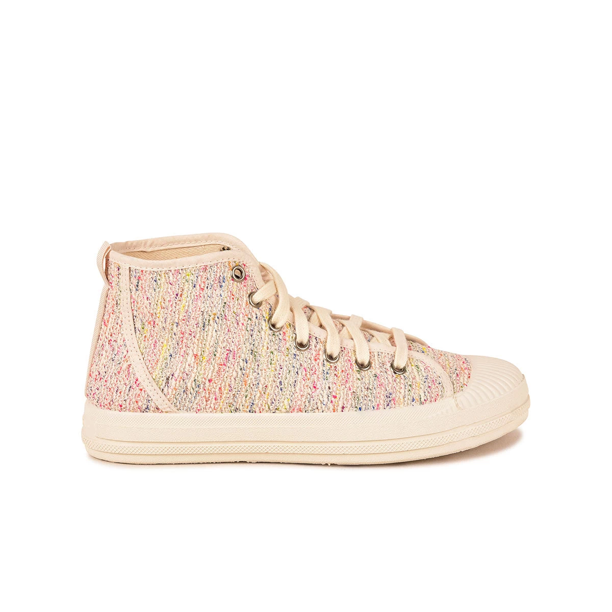 Laissez-vous séduire par notre basket femme ETCHE avec un tout nouveau tissus couleur multi tissé en Espagne et inspiré des codes du design et de l’ameublement, le jeu de fils multicolore délicat apporte douceur et sophistication. Cette basket en coton recyclé est très tendance cette saison, saura vous séduire grâce à sa semelle en caoutchouc naturel qui permet à cette une basket d’être plus flexible et plus souple. Elle saura également vous apportera confort et légèreté lors de vos balades estivales grâce à sa tige haute et sa semelle striée. Petit plus, sa semelle intérieure est amovible ce qui est très pratique si vous souhaitez y placer les vôtres.