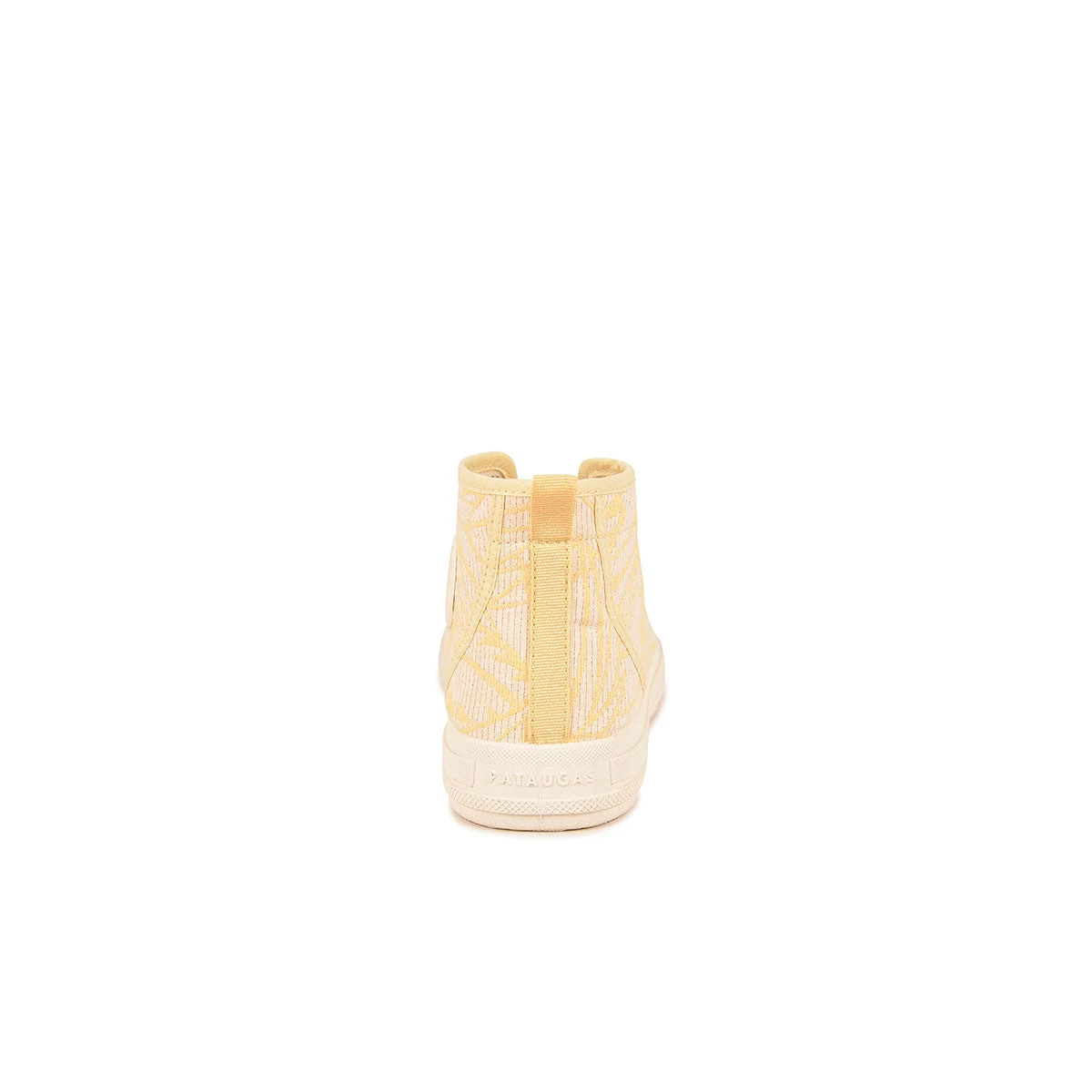 Revisitée cette saison, la basket montante femme ETCHE, est revêtue de sa plus belle toile Jacquard tissée en France coloris jaune. Ce tissu inspirée par les plages des îles paradisiaques est issue de notre travail avec le Studio Walkie Talkie. Toujours montée sur une semelle injectée et en caoutchouc naturel, saura vous séduire grâce à son confort et légèreté. Cette chaussure très originale elle s’accordera parfaitement avec toutes vos tenues estivales. Petit plus, sa semelle intérieure est amovible donc très pratique si vous souhaitez insérer vos propres semelles.