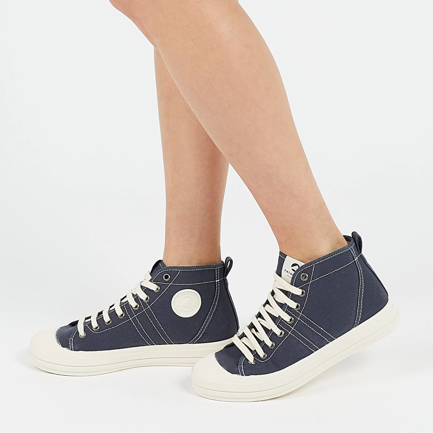La basket femme ETCHE marine est LA nouveauté de cette saison. Cette basket montante est munie d’une tige bleu marine en coton recyclé. C’est une chaussure légère, idéale pour allier légèreté, confort et style. C’est une basket montée sur une semelle en caoutchouc naturel ce qui lui permet d’être plus flexible et plus souple. Sa semelle intérieure est amovible ce qui est très pratique si vous souhaitez y placer les vôtres.