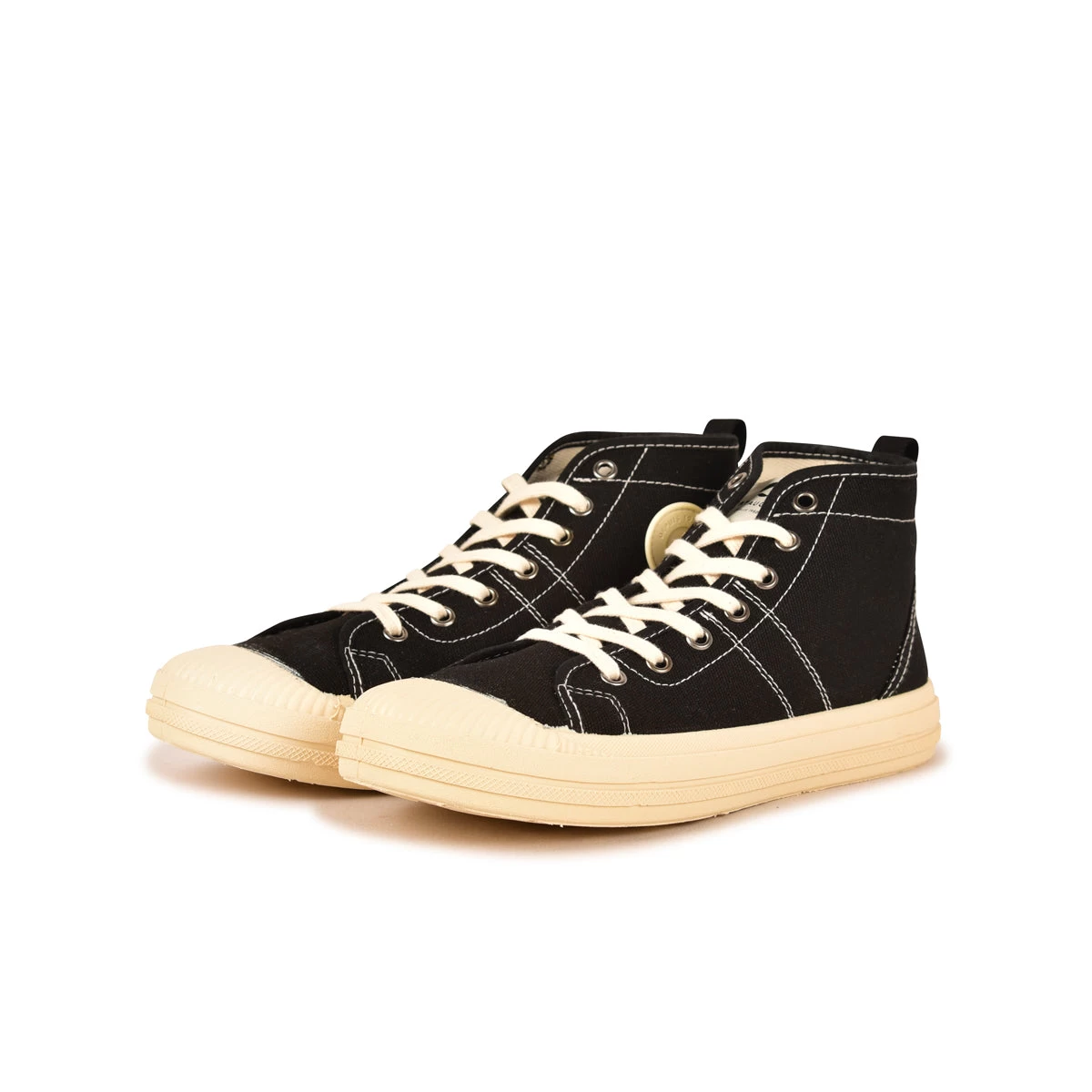 Cette saison, la basket montante femme ETCHE se pare d’une toile noire résistante et rehaussée par des surpiqûres blanches. C’est un classique à avoir dans son vestiaire féminin. Habillée d’un jean ou d’une robe, cette basket en toile est un intemporel et est montée sur une semelle en caoutchouc naturel ce qui la rend plus légère mais surtout plus responsable.