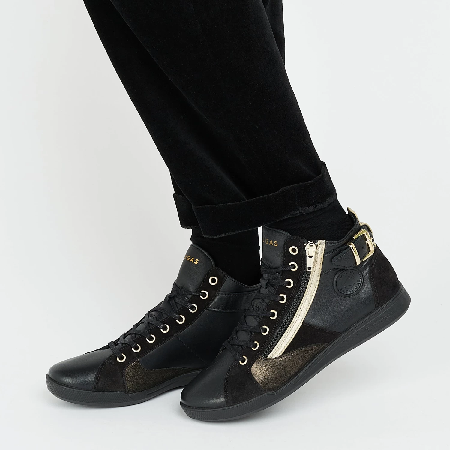 Adoptez la basket montante pour femme PALME. Cette chaussure est reconnue pour son confort légendaire et sa grande souplesse. Grâce à son cuir fin et robuste, cette basket est comme une seconde peau. Sa semelle injectée est très souple et très légère, idéale pour vos marches quotidiennes. Ce modèle taille petit.